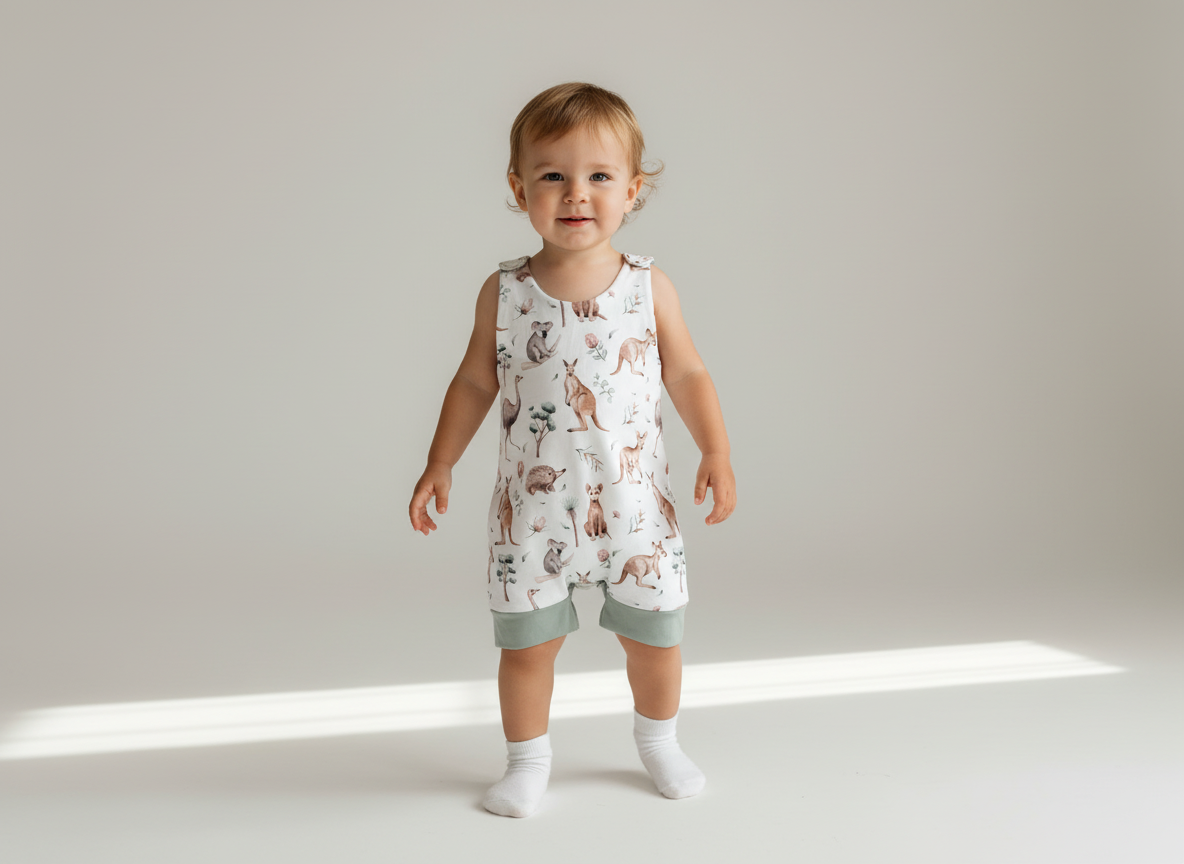 • Exclusive Aussie Animals print: A unique Australian animals romper you won’t find in other Australian handmade kids clothing—perfect for gifting.